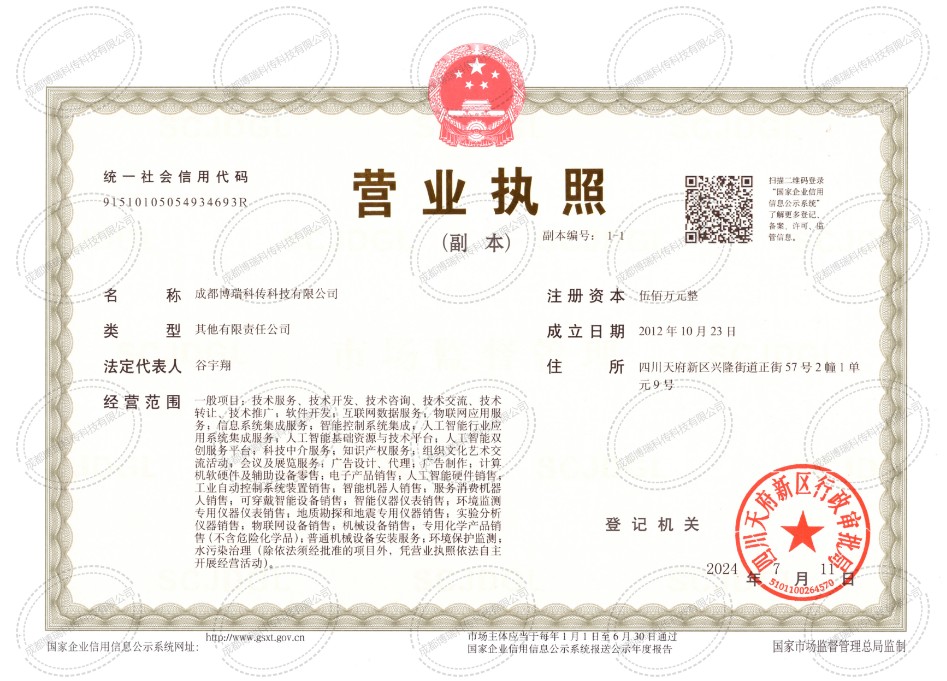 成都博瑞科傳科技有限公司始創于2012年,是國家高新技術企業、四川省創新型科技企業。公司以市場為導向、以創新為基因,以服務為根本,積極響應國家高質量發展政策,尊重價值、品質服務。多年來,公司秉持“以做科研的精神做產品”的嚴謹態度,圍繞市場痛點,自主研發了水質在線監測大數據云平臺、水質監測智能傳感站(直測)系列產品(固定站5~18參)、應急監測產品(便攜式巡檢儀5~8參)、水氣土協同綜合管理系統、水質監測實驗室輔助設備、地下管廊監測、邊坡監測等高科技、高質量設備。廣泛應用于地表水、地下水、黑臭水體直測監測、智慧城市監測管理、地下油氣管廊內壁腐蝕監測和山體滑坡位移監測。在流域監測治理、面源污染溯源、洪峰過境監測、網格化監測管理、水氣土協同管理、應急監測、水生態監測、滑坡位移監測、云平臺數據分析管理等應用場景發揮積極作用,為相關管理部門智能化監管提供科學有力的支撐和保障。公司現有發明專利10余項,實用新型、軟著共計50余項。是以軟硬件結合為定位的創新型科技企業,是我國云傳感技術的發起者和倡導機構。